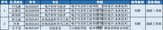 南京邮电大学全国大学生光电设计竞赛国赛获奖名单