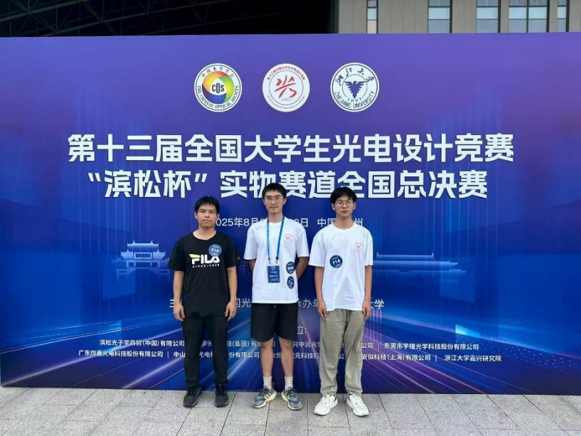 2025年8月21日,由中国光学学会主办、全国大学生光电设计竞赛委员会具体负责、浙江大学大学承办的“第十三届全国大学生光电设计竞赛”实物总决赛于杭州落下帷幕,我院学子荣获国家一等奖1项、三等奖1项。