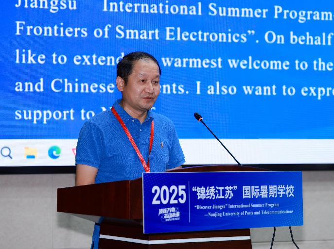 在开班致辞中,刘青山副校长介绍了南京邮电大学的学科特色、发展战略以及国际化办学成果。他强调,智能电子作为信息技术的关键创新方向,正以广阔的应用前景引领新一轮科技革命。本次暑期学校围绕电磁技术、信息科技与文化实践等多领域展开,是南邮深化国际交流与合作的重要平台。学校将持续聚焦电磁技术与集成芯片前沿,推动多学科交叉与创新发展。他鼓励学员们把握学习机会,积极参与讲座、实验实践及文化交流活动,拓宽视野、激发创新,为未来学术与职业发展夯实基础。