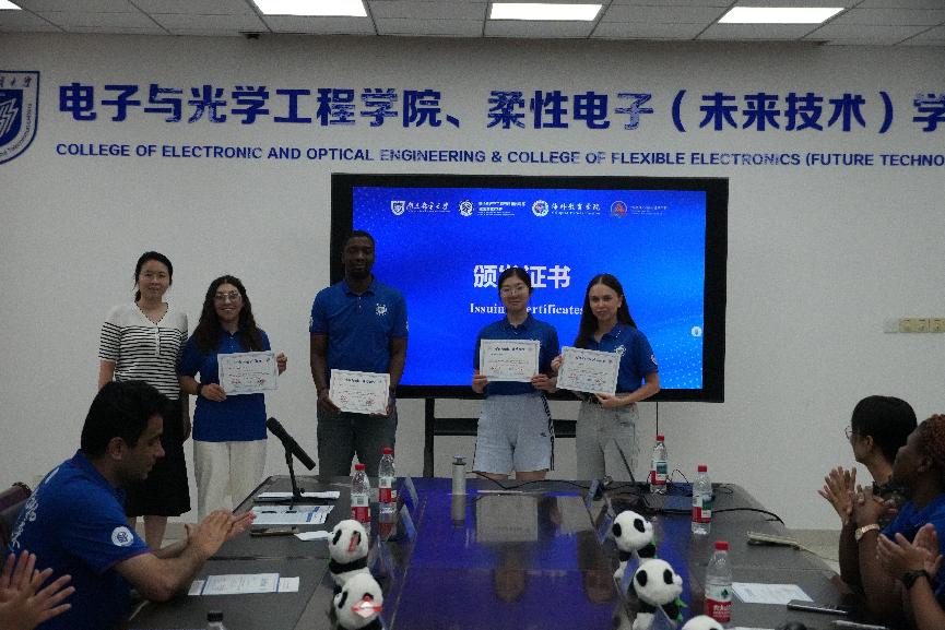 结业典礼上,各小组学员进行了精彩纷呈的学习汇报。大家普遍认为,暑期学校课程设置丰富、内容前沿,不仅提升了专业认知、感受到智能电子技术的魅力,也切身融入中华文化,收获了珍贵的国际友谊。学员们向组织活动的老师们表达了诚挚谢意,并以才艺表演的形式表达了对项目的不舍与感念。典礼最后,刘蕾蕾副院长等为师员颁发结业证书,并对4名荣获“最佳领导力奖”的学员予以表彰。