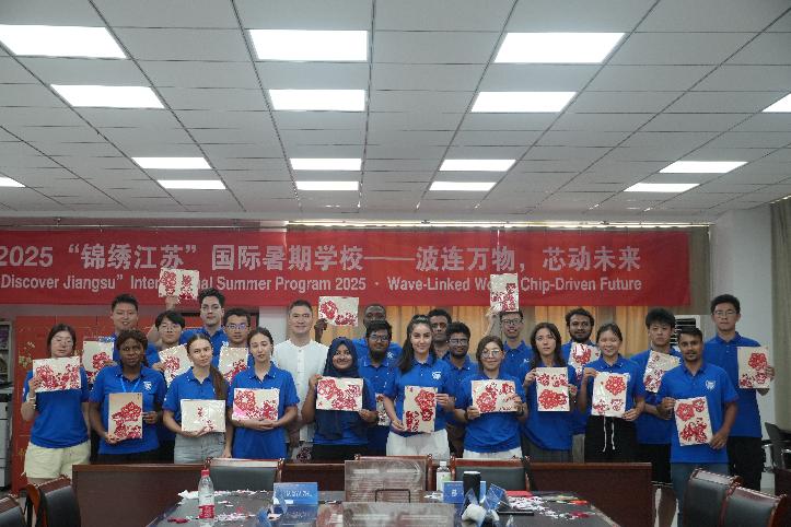 8月31日,2025年“锦绣江苏”国际暑期学校项目——“波连万物,芯动未来—智能电子技术前沿”圆满闭幕。电光学院副院长刘蕾蕾、海外教育学院副院长汤美玲及相关教师出席结业典礼。刘蕾蕾副院长在总结中表示:“在过去的十四天中,我们共同探索了柔性电子、信息科技等前沿领域,从学术讲座到科学实践,从文化体验至企业参访,留下了诸多难忘瞬间。此次活动不仅拓展了大家的学术视野,激发了科研热情,也让大家体验到从理论到实践的成就感,并深刻感受到中华传统文化的博大精深。”她鼓励学员继续保持对知识的热爱与探索的精神,将所学所感带回各地。