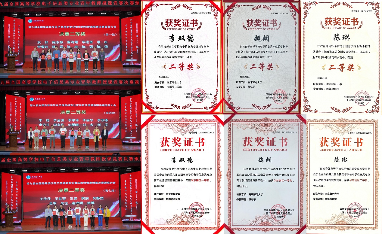 9月21日,第九届全国高等学校电子信息类专业青年教师授课竞赛决赛在长春理工大学落下帷幕,南邮beat365在线登录平台(以下简称“电光柔学院”)副院长刘蕾蕾教授带队参赛,学院青年教师李双德、魏娴、陈琳均获全国决赛二等奖。在预赛华东赛区中,李双德、魏娴老师获一等奖,陈琳老师获二等奖,徐艳卉、薛琛鹏老师获三等奖。