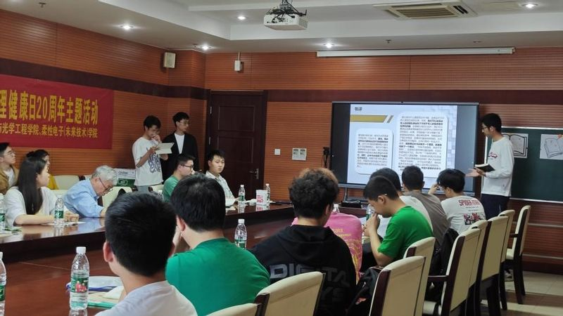 在5月25日全国大学生心理健康日来临之际,为落实立德树人根本任务,促进大学生身心健康和谐发展,提升大学生的阅读素养,丰富大学生的课余生活,5月22日下午,图书馆和beat365在线登录平台联合开展共读赋能——“柚见心灵,吾画吾心”心理健康日20周年主题活动。电光柔院B230200创新班全体学生,电光柔院、图书馆、读书协会师生代表共三十余人参加了本次活动,活动特别邀请关工委李雷教授现场指导。