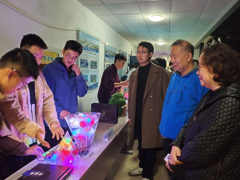展览现场评委们在现场与同学们亲切交流,耐心询问作品设计思路与技术细节,对同学们的创意构思和创新精神给予高度评价,并鼓励同学们在今后的学习中将理论知识与实际应用更好结合,继续在科技创新的道路上探索前行。