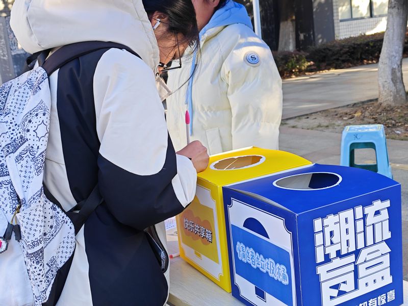 活动现场划分出“快乐共享区”与“烦恼投递站”两大功能板块。同学们可在“快乐共享区”记录近期生活中的暖心片段或成就时刻,将便签投入“快乐共享箱”,并随机换取一张他人留下的快乐故事,共同拼贴成一幅色彩明快的“喜悦地图”。而在“烦恼投递站”,参与者能够以匿名方式写下当前面临的困惑或压力,将其封存于“情绪垃圾桶”;也可主动抽取他人的烦恼,以书写方式进行回应与开导,让温暖在笔尖悄然传递。为鼓励同学们真诚表达,活动特别设置了温情回馈环节。每一位参与者完成情绪书写或回应后,都能领取一份用心准备的精美纪念品,让这份关于情绪的对话,沉淀为成长路上一个有形的温暖印记。