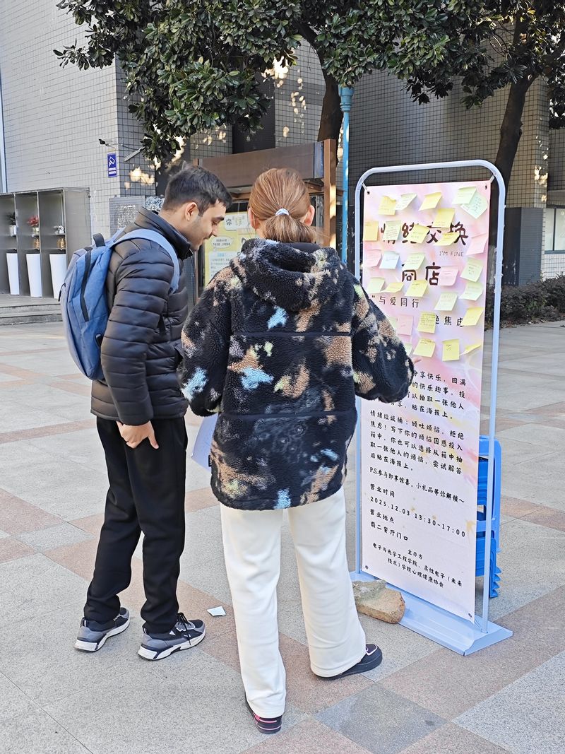 为营造关注心理健康、互助成长的校园氛围,12月3日下午,beat365在线登录平台心理健康协会在南二食堂门口成功举办了“情绪交换商店”主题心理活动。该活动以创意互动为载体,为同学们搭建起一个自由抒发情感、交换心声的开放式平台,在初冬校园中播撒下关怀与理解的种子。