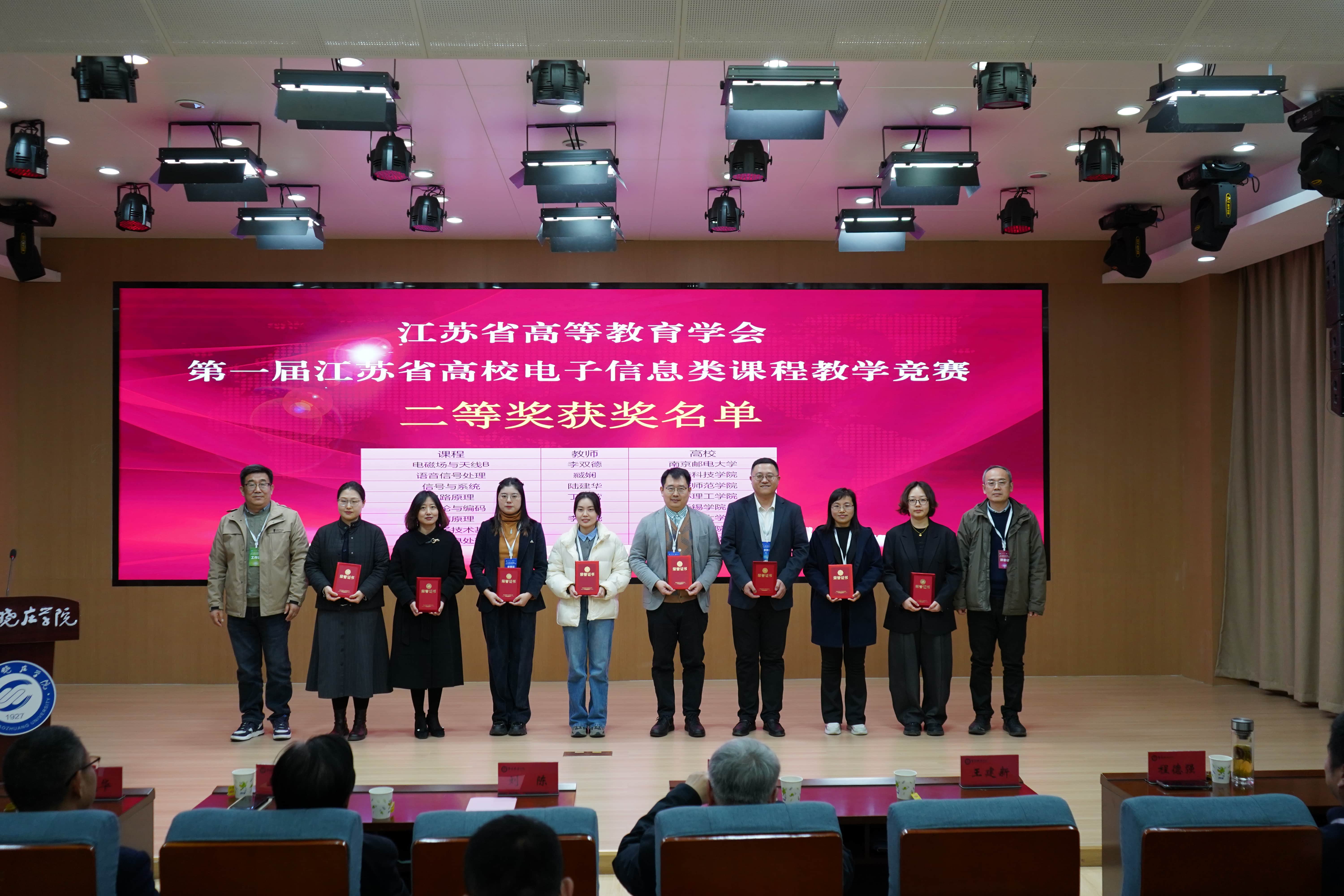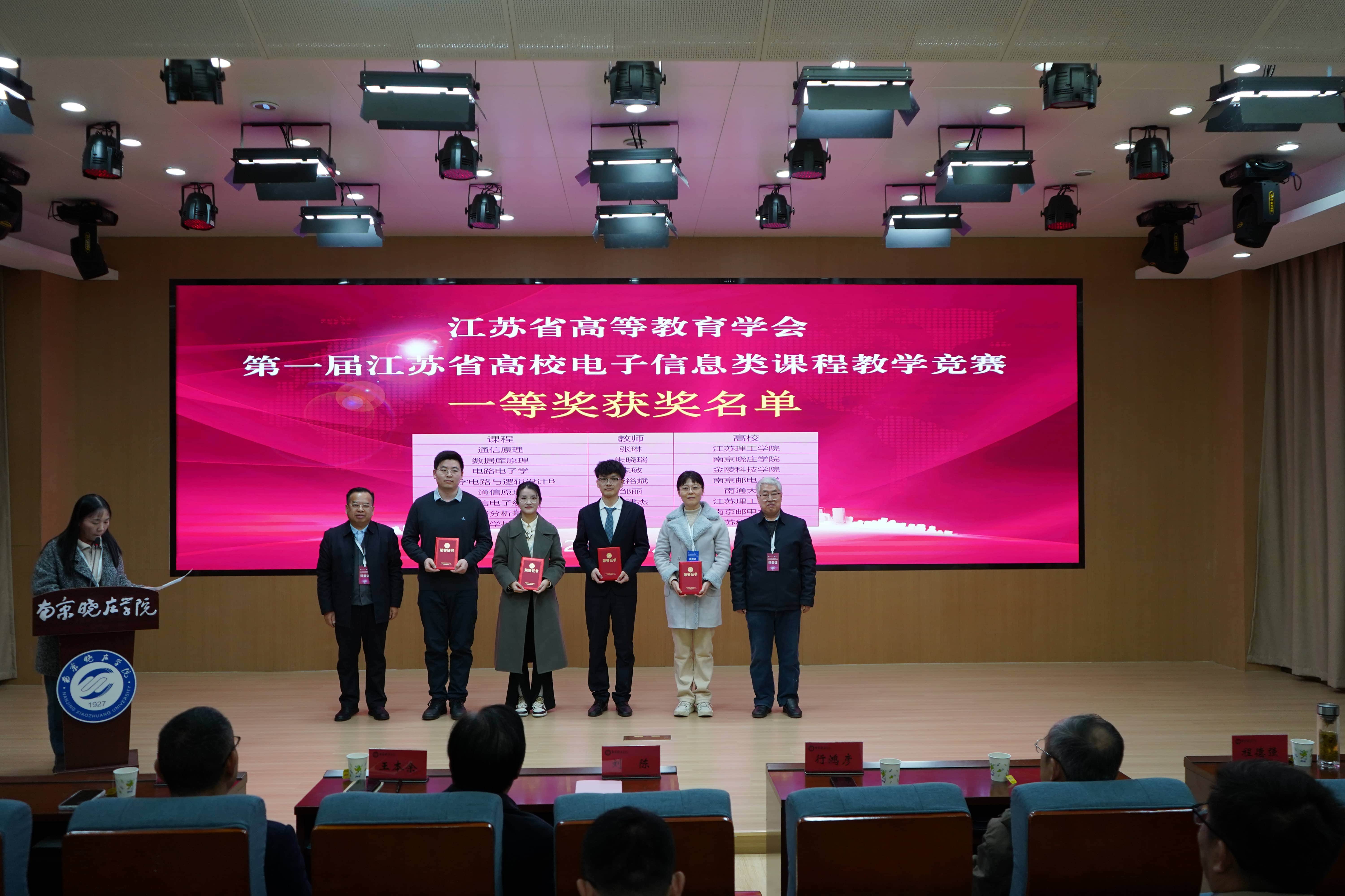 12月6日,第一届江苏省高校电子信息类课程教学竞赛决赛在南京晓庄学院落下帷幕。经学校预赛、省级复赛网络评审,全省高校共30名优秀教师脱颖而出晋级决赛,经过激烈角逐,我院青年教师臧裕斌、沈锋荣获一等奖,李双德荣获二等奖,陈青云荣获三等奖,充分展现了我院电子信息类课程的教学实力和教师风采。