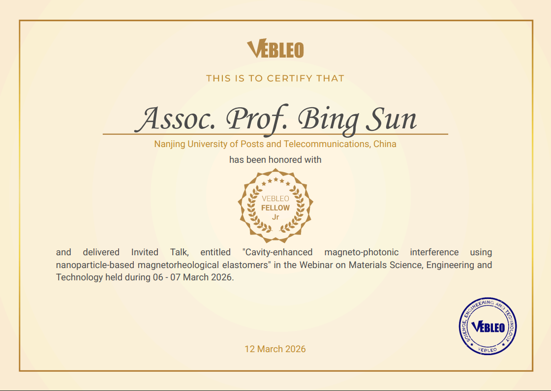 近日,beat365在线登录平台孙兵副教授被国际科学组织Vebleo授予Vebleo协会会士(Vebleo Fellow)荣誉称号,以表彰其在微纳光子与光纤传感领域的学术贡献。